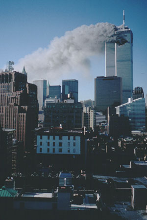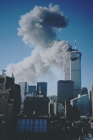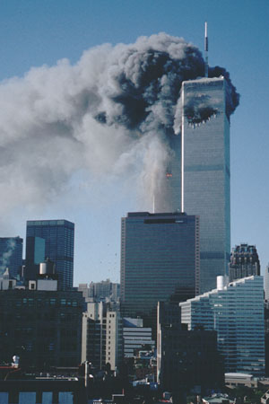 برج جنوبی مرکز تجارت جهانی ناگهان از هم فرو پاشيد و فرو ريخت . جنوب جزيره منهتن را دود و غبار غليظی فرا گرفت.
